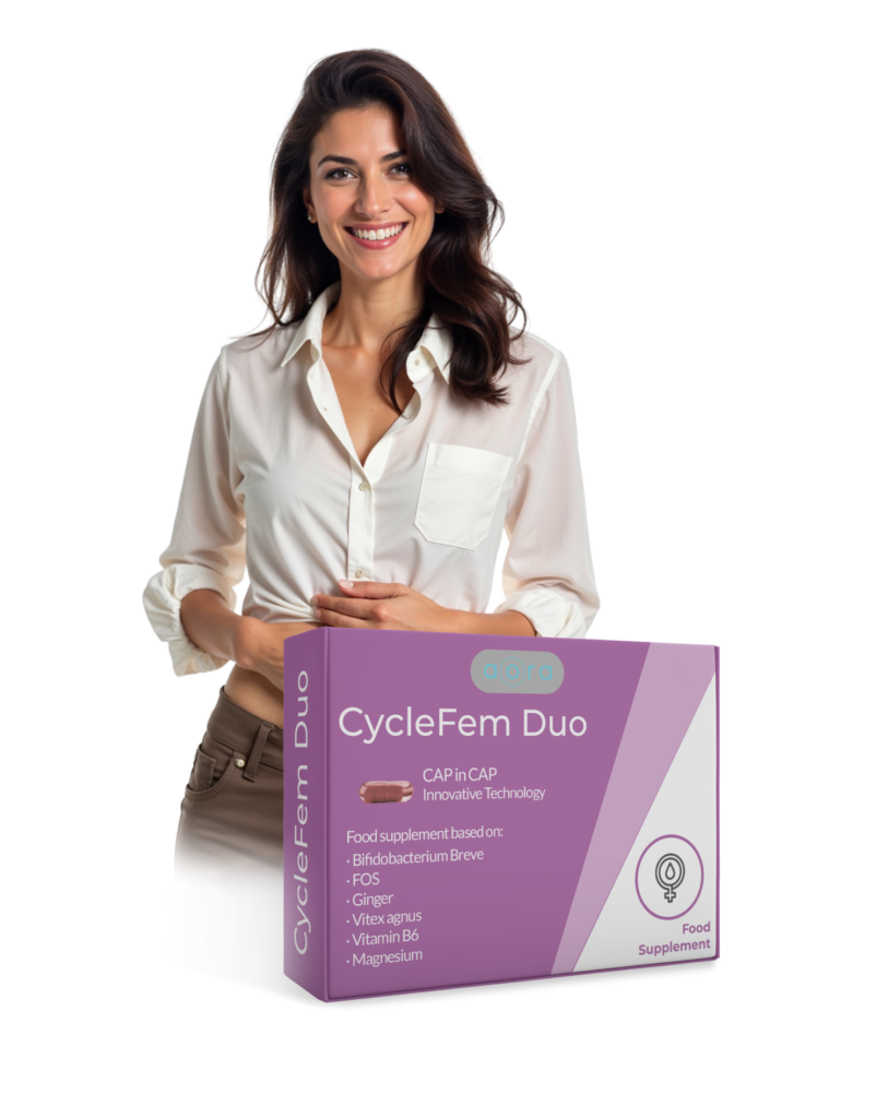 CycleFem Duo is an alternative and efficient solution to current treatment options for PMS. Moreover, thanks to its innovative CIC system, the probiotic is protected from potential interactions with the rest of the formula.